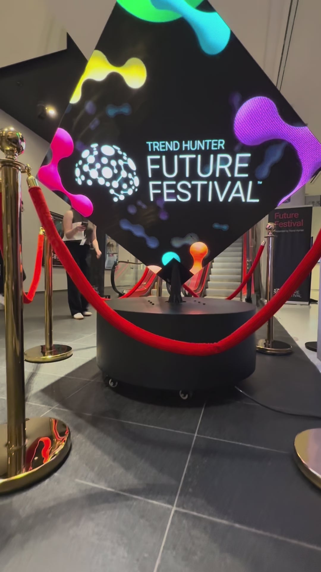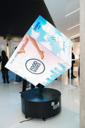 The 6-Sided Rotating LED Cube Display stands over 6.5 feet tall and is the ultimate attention-grabber for advertising, events, exhibitions, and brand activations.